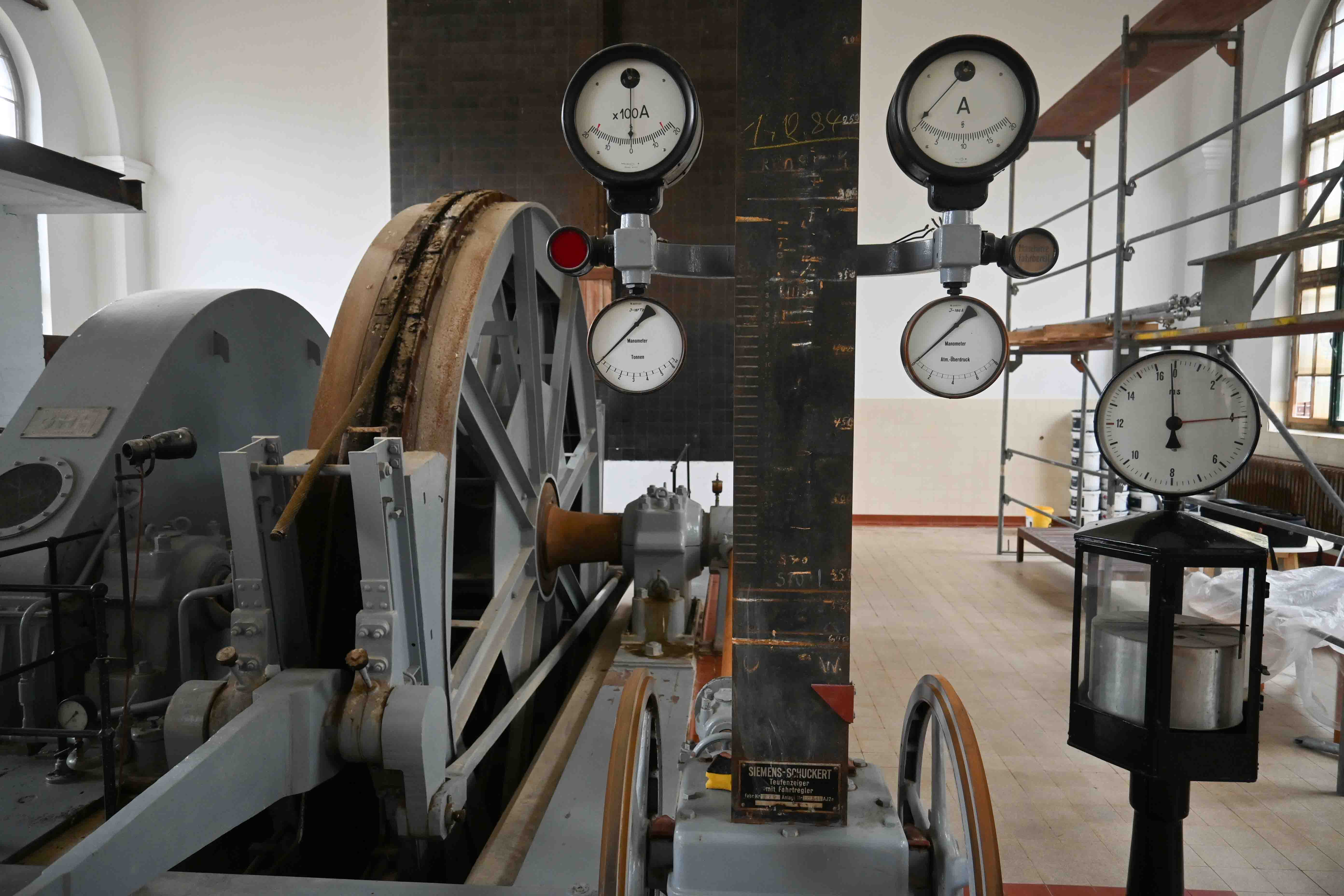 Jetzt befindet sich ein voller Förderwagen auf dem einen Fördergestell und ein leerer Förderwagen auf dem anderen Fördergestell. Die Fördermaschine muss jetzt nur den Inhalt des Förderwagens zu Tage fördern. Man spricht auch von der überhängenden Last im System. Wenn das Fördermittel zwei Etagen hat, können zwei Förderwagen aufgeschoben werden. Der Fördermaschinist muss dann immer die Fördermittel umsetzen. Dafür gibt der Anschläger, der an der 600 m Sohle steht, das Einschlagsignal an den Maschinisten.